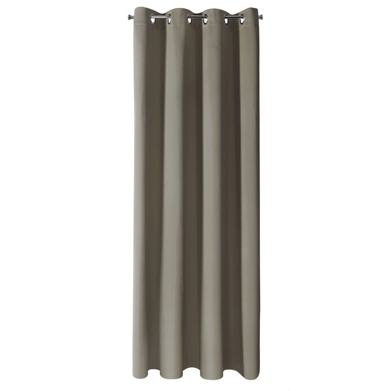 Ciemnobeżowy kolor dodaje wnętrzu przytulności i elegancji. Zasłona pięknie układa się w miękkie fale, tworząc efektowną dekorację okna.