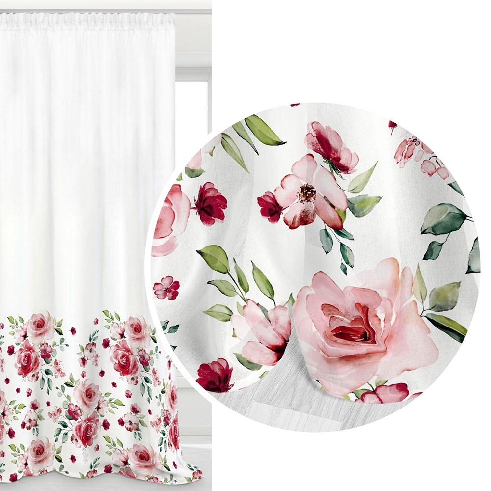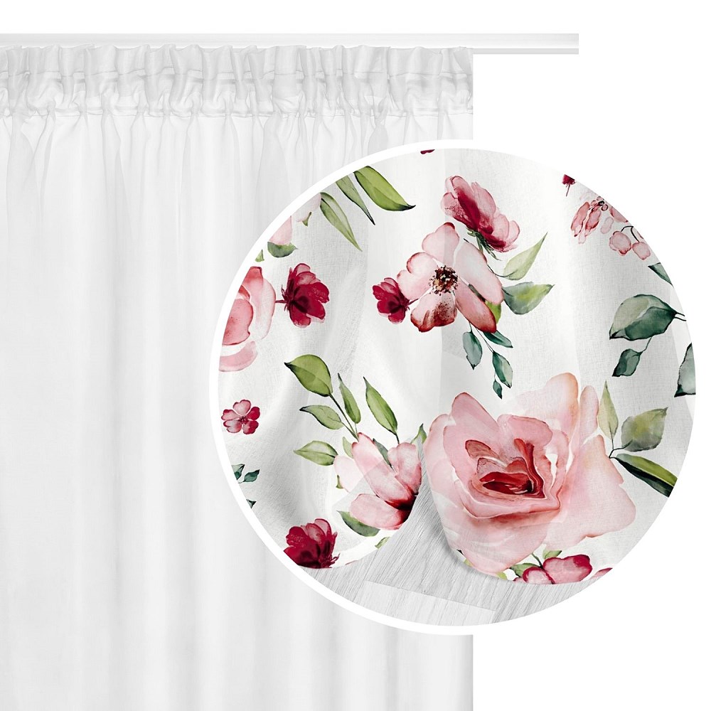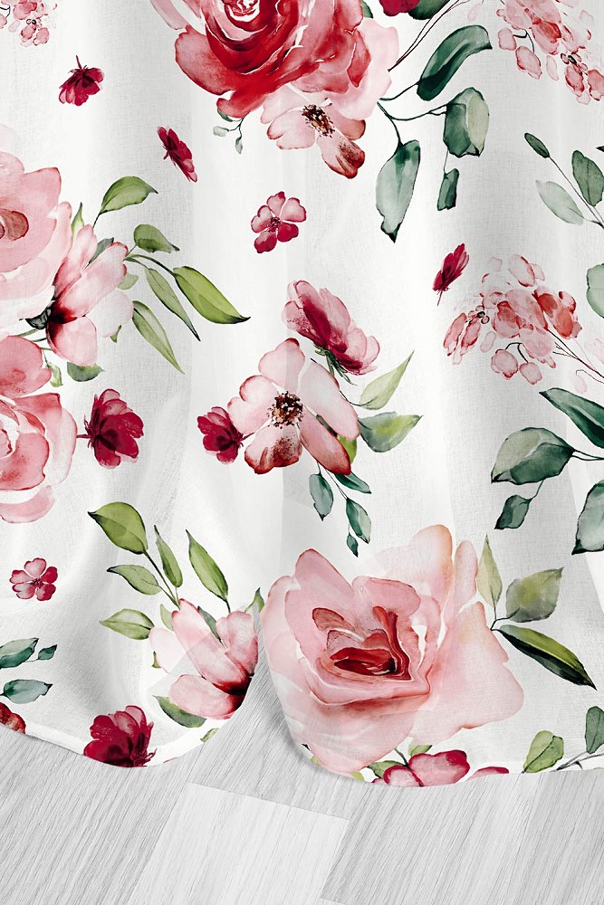 Zasłona 140×250 Rosally kwiaty biała pudrowa różowa czerwona zielona gotowa na taśmie