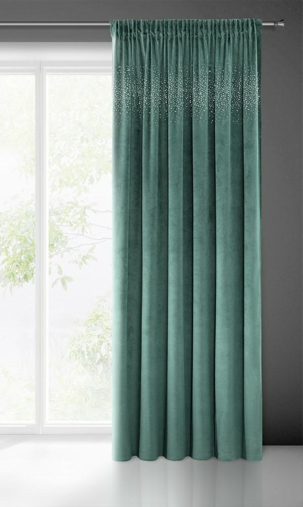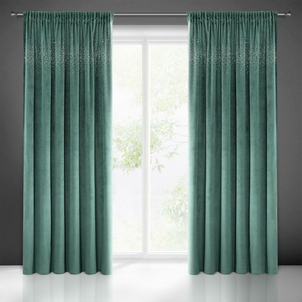 Zasłona welwetowa ze srebrnymi cyrkoniami szerokość: 140 cm, długość: 270 cm, kolor: turkusowy, Gramatura: 215 GSM, Skład: 100% poliester