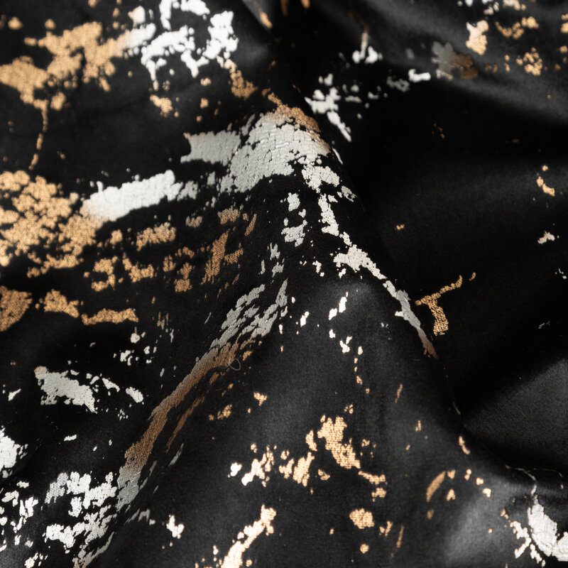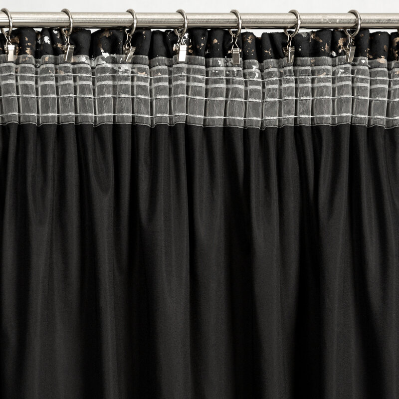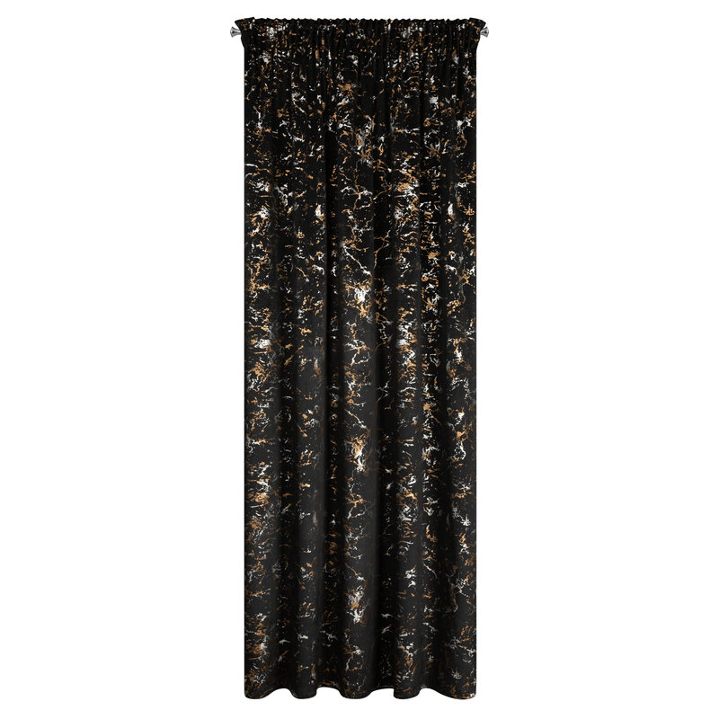 Zasłona 140×270 Dori czarna gotowa na taśmie z błyszczącym nadrukiem Eurofirany