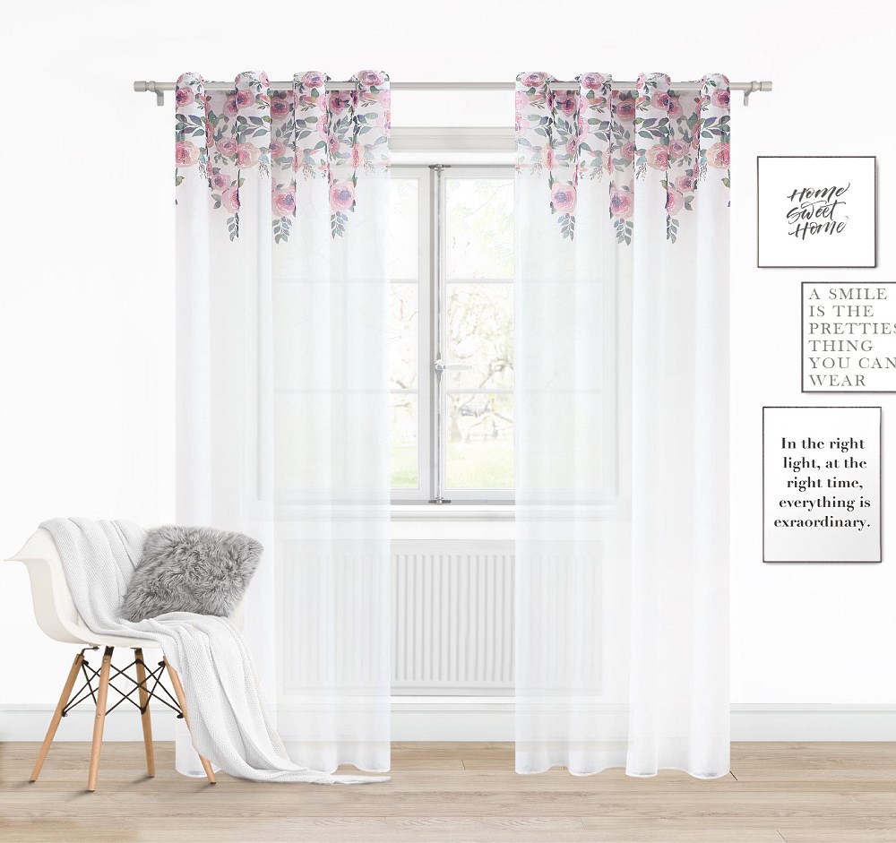 Zasłona gotowa 140×250 Mansion z różowymi różyczkami – delikatna elegancja do Twojego wnętrza