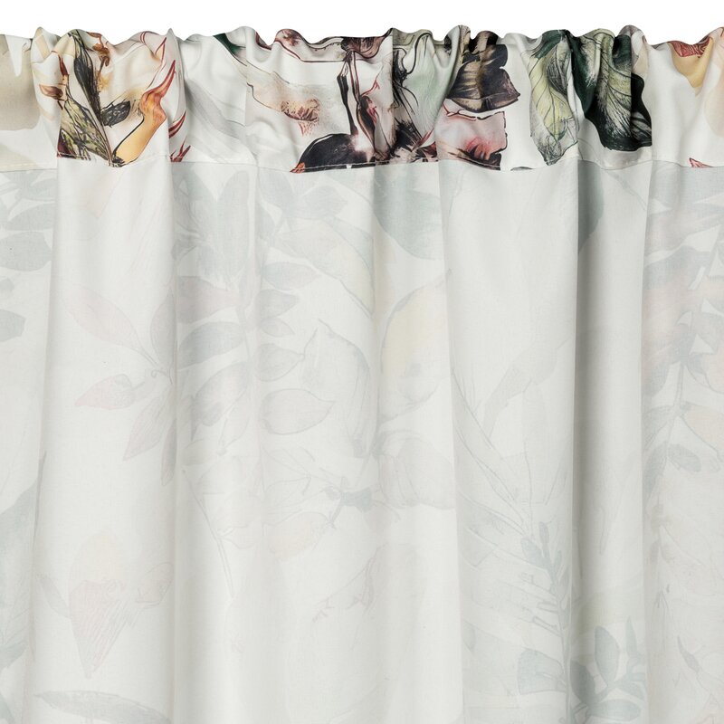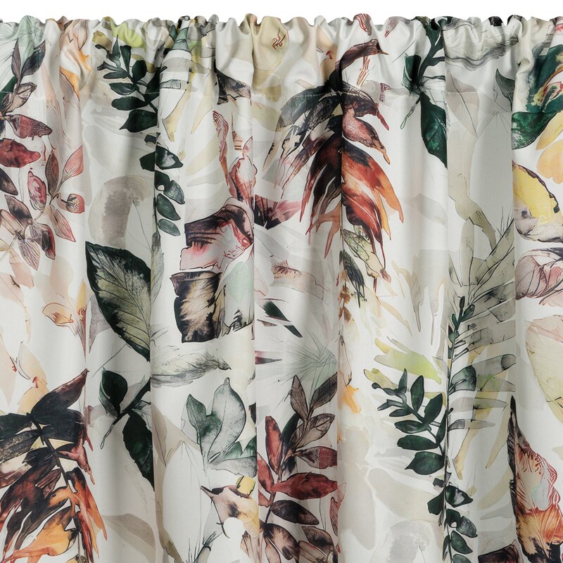 Modny wzór z kolorowymi liśćmi ożywia przestrzeń i wprowadza do niej naturalny, świeży klimat. Uniwersalna biel z akcentami kolorów sprawia, że zasłona pasuje do wielu stylów aranżacji – od nowoczesnych po rustykalne.