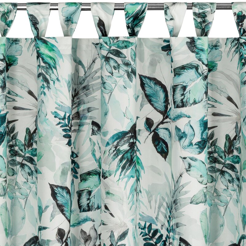 Zasłona gotowa 155×220 Garden 2 biała zielona liście do ogrodu wodoodporna mocowana na szelki/rzep Eurofirany