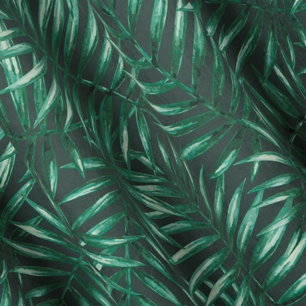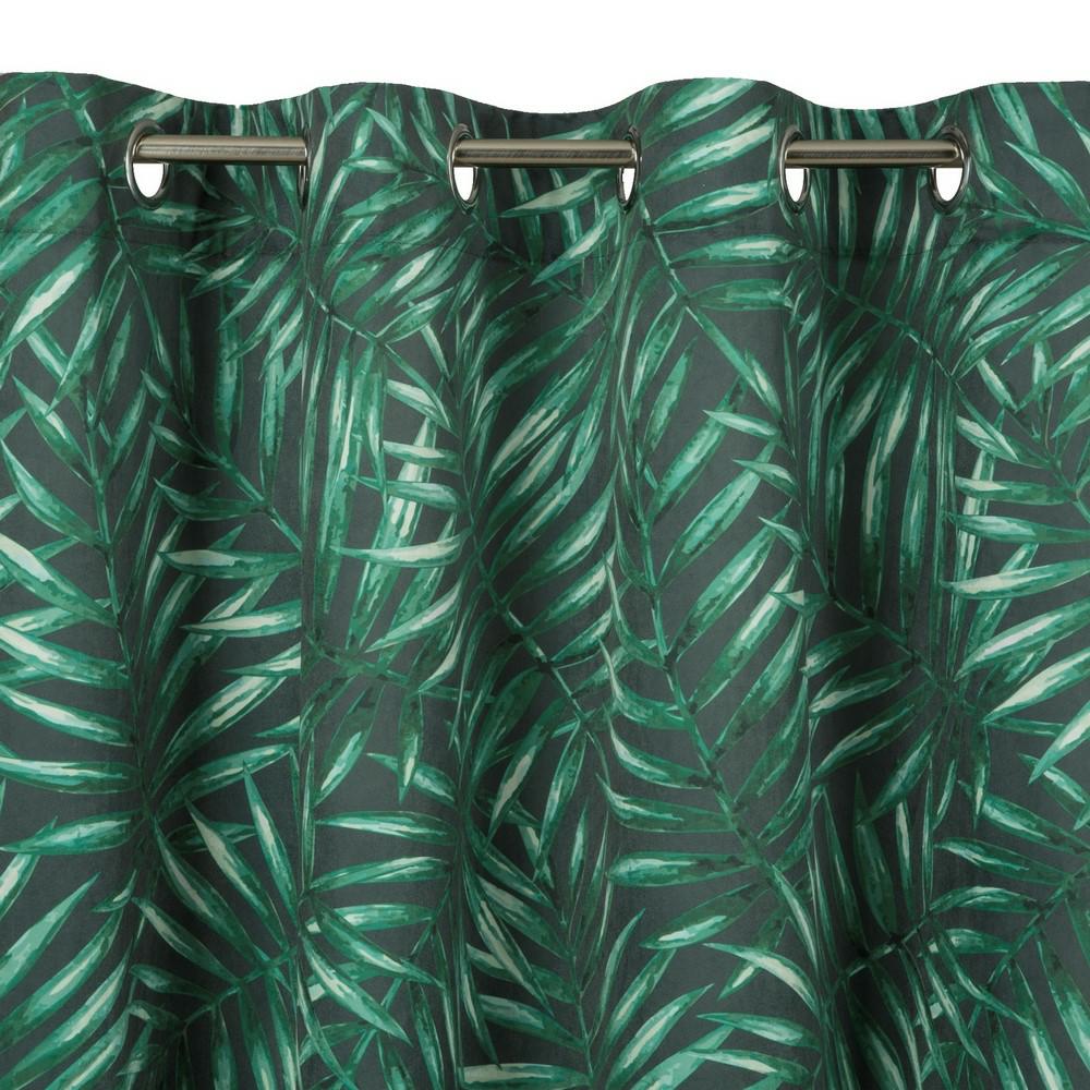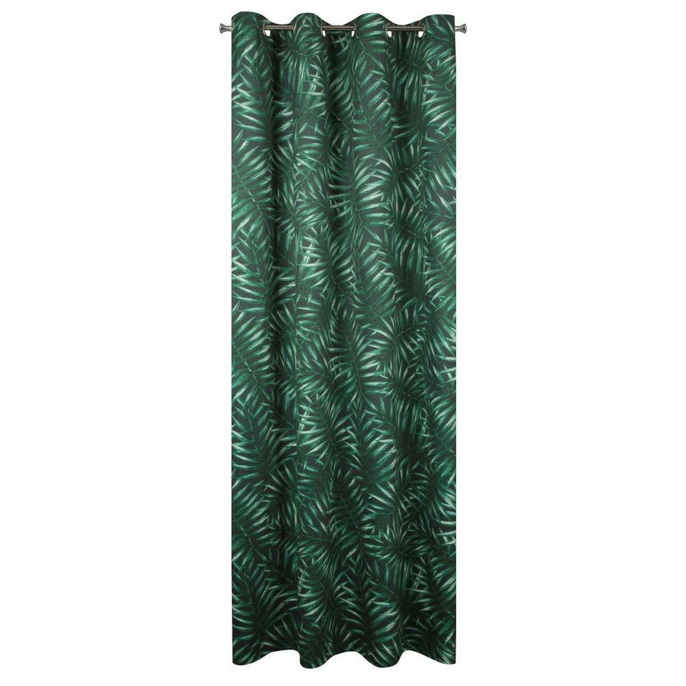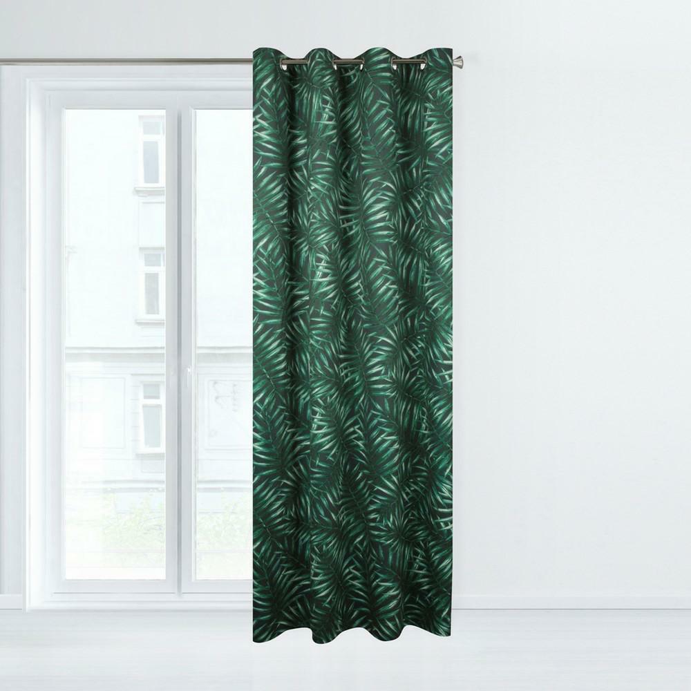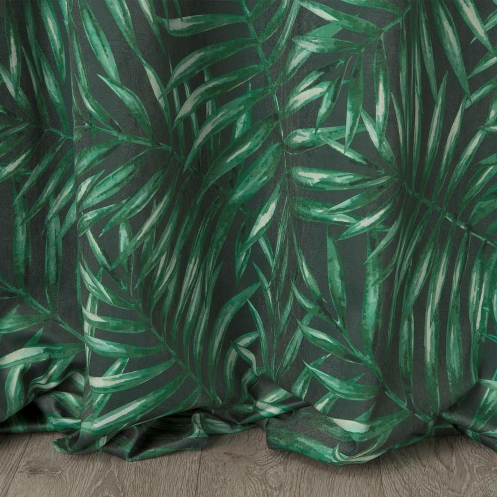 Zasłona gotowa na przelotkach 140×250 Hilary — liście palmy, grafitowo-zielona