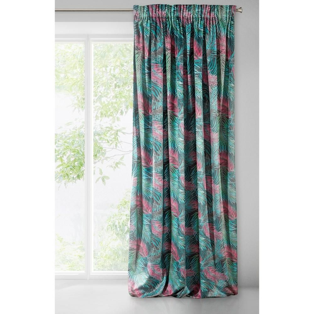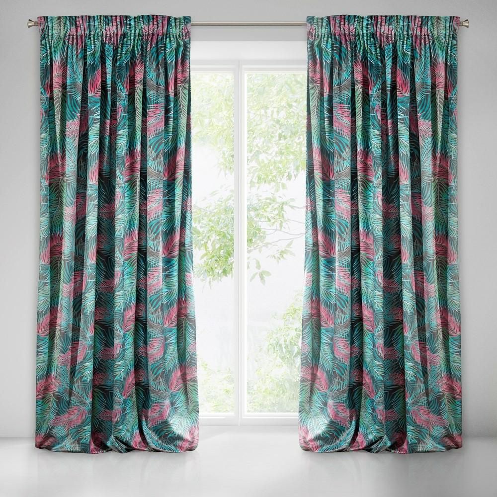 Zasłona gotowa na taśmie 140×270 Alba piórka stalowa zielona różowa welurowa Eurofirany