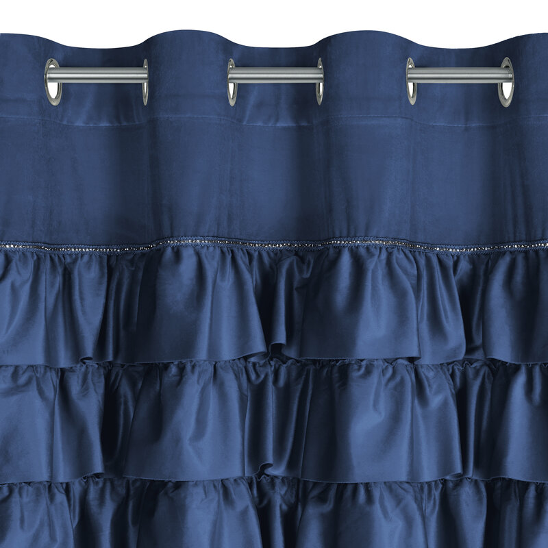 Zasłona gotowa Sami 140×250 granatowa falbanki welurowa na przelotkach Eurofirany